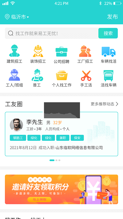 1.易工无忧APP的招工信息很多,可以及时的了解各类适合自己的工作内容。