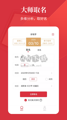 好名字APP是一款非常好用的起名软件,帮助用户们解决起名字困难的问题,让取名字变得更加轻松便捷,好名字APP没有繁琐的步骤,你只需要输入姓氏,性别以及出生日期和地点等,就可以生成一个好名字了,感兴趣的用户们快来KK下载体验吧~