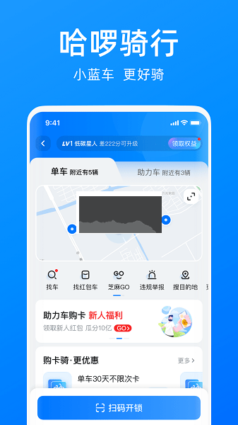 哈啰单车免押金,扫码用车极速开锁