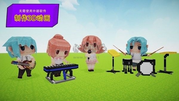 用电影方块创造动画,电影方块中包括摄影机,演员,字幕,声音,或者其他电影方块等等。扮演演员录制动画,例如走,跑,跳。在动画时间轴上可以精确调整演员的每个骨骼关节。将多个电影方块链接起来可以连续播放。