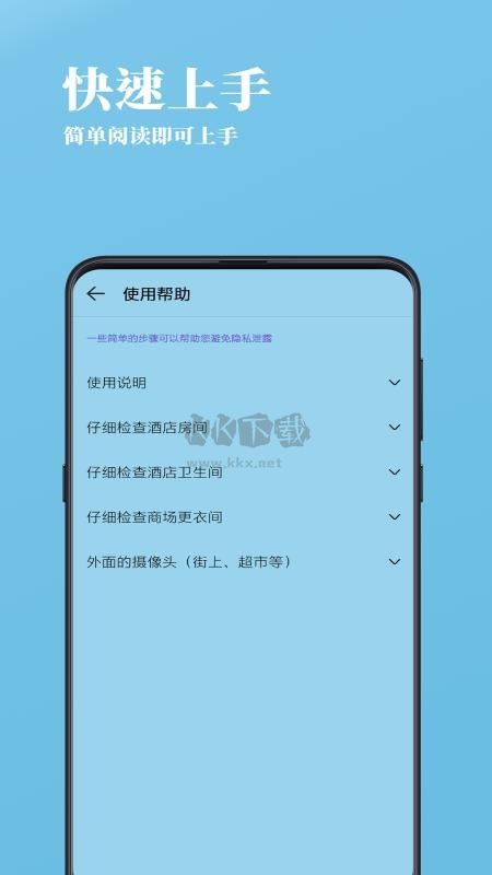 2.摄像头检测:使用手机内置的传感器检测摄像头。一旦发现可疑摄像头,它就会通过振动提醒用户。