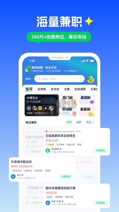 青团社兼职软件每天都会更新大量的兼职信息,确保用户能够及时了解到最新的兼职机会;无论是全职还是兼职,用户都可以通过软件轻松找到适合自己的工作;
