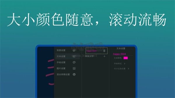 2.丰富的字体颜色,字号,样式任你挑选,让手机弹幕来替你传达爱意吧。