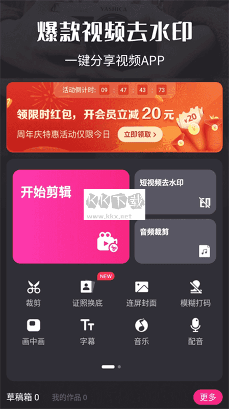 视频剪辑编辑: 一键去水印,高精准度剪辑,自由分割,精准到0.04秒。