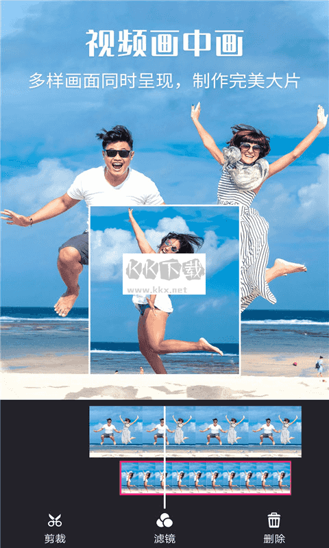 多样创作元素: 提供照片滤镜、文字贴纸、炫酷转场等丰富元素,使视频更具创意。