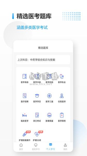 医考拉APP是一款专门为学医的朋友们打造的学习软件,医考拉APP拥有丰富的题库还有超多的直播课程提供给大家,让你可以轻松的在医考拉APP参加各种考试应对不同的考试要求,覆盖了全阶段的医学题库让你可以高效的在线学医,还有模拟考试环境让你可以在医考拉APP巩固你的知识,感兴趣的用户快来KK下载体验吧~