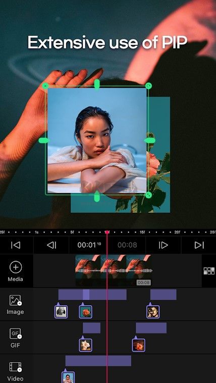 PIP功能可以让你将影片、照片或GIF加在影片上,增加创意。