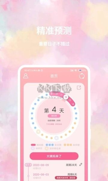 大姨妈日历APP是一款能够精准的帮助用户们记录大姨妈时间的软件,内置了排卵追踪的功能给你带来便捷的备孕计划,支持用户们一键进行记录使用,大姨妈日历APP拥有超多的关于生理期的相关知识提供给大家学习参考使用,一起呵护女性的健康安全,感兴趣的用户快来KK下载体验吧~