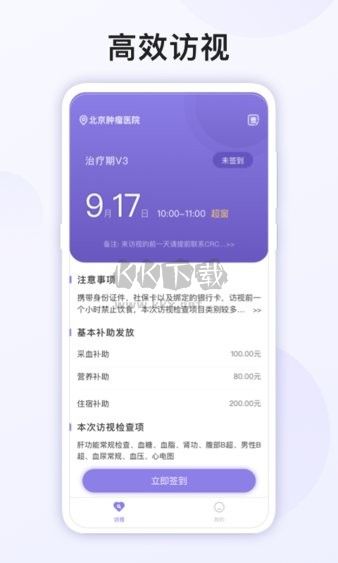 贴心助手,参与到临床试验的用户利用它得到贴心的帮助,更好更快的参与。