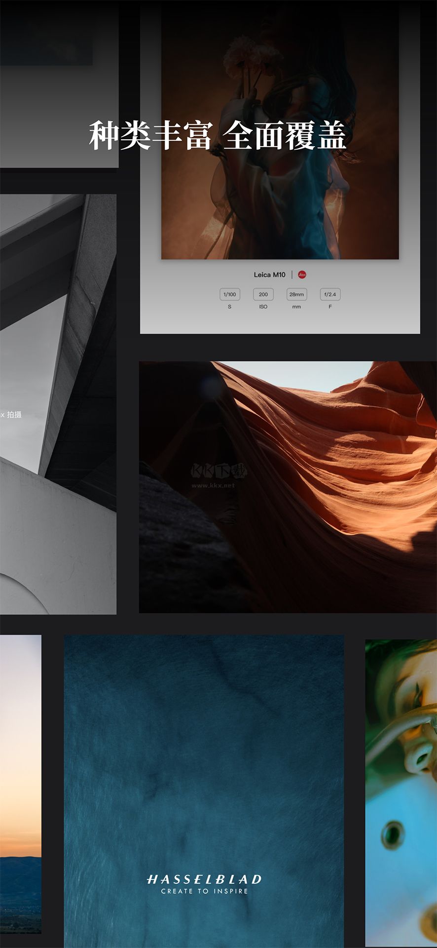 提供品牌水印、独特设计感水印、时尚风格水印、个性自定义水印。水印种类丰富(后续版本持续更新),满足所有摄影师需求。