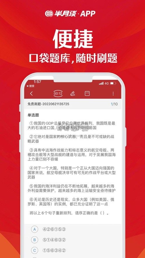 近十年国考、省考真题全收录,半月谈特邀来自中国人民大学、北京师范大学、中国社科院等高校的专家学者,独家制作公务员考试真题参考答案与详细解析。功能板块包括在线模考、整套刷题、专项练习、时政每日测验及随机刷题。