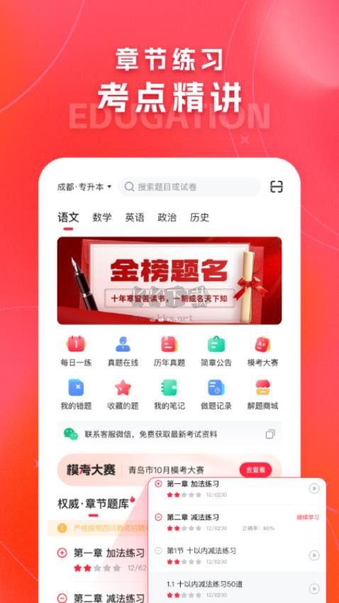 丰富的考试题库内容,都是直接推送,一键获取更方便。