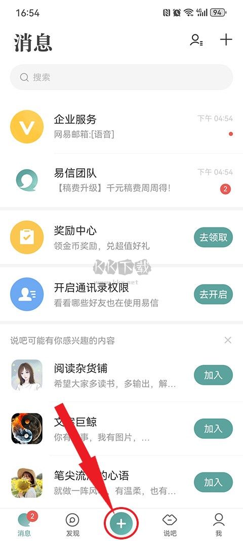 用户在本站下载并打开软件之后,先登录自己的账号,然后在发布帖子前,可以先在消息页面加入自己喜欢的说吧。