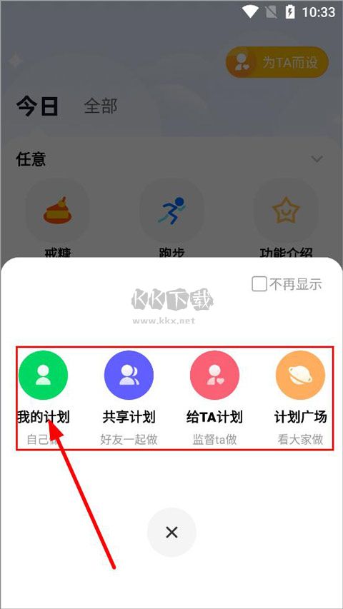 2、计划可以设置我的计划、共享计划(和好友一起)、给TA计划(监督ta做)、计划广场等,点击设置;