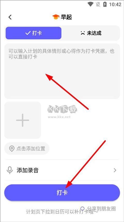 7、输入计划情形或者上传照片/添加录音,点击打卡即可完成。