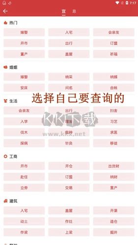 然后我们就能看到我们想要出查询的事宜事项了,比如小编这里就选择了查婚恋,点击这个婚恋的选项。