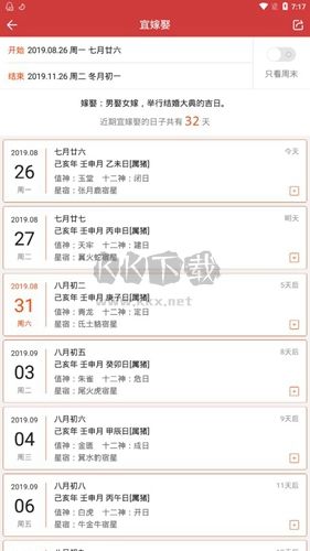 然后我们就能非常直观地看到接来下的适宜婚恋的日子了。