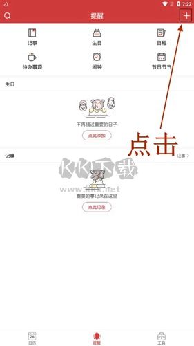 来到提醒的功能分区以后,我们点击上方的【+】号来添加我们生日。