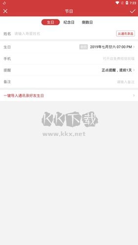 4、生日、纪念日、倒数日:支持通讯录、社交网络上的重要日期一键导入