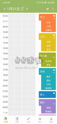 总结:通过文字、图片和录音来记录每个时段的点滴感悟。