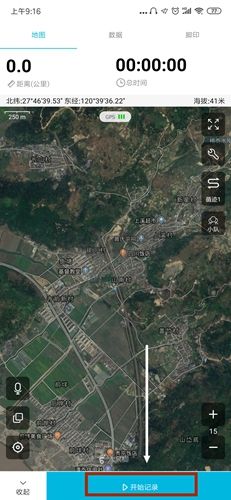 然后我们就能进入到路线的记录界面,点击下方的开始,我们即可开始旅游路线的记录了。