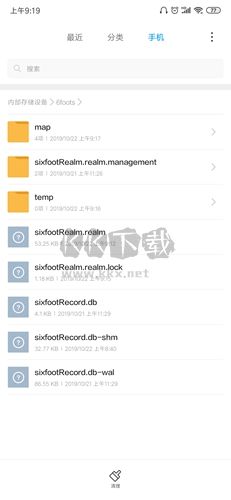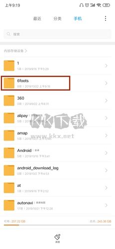 我们打开我们手机的文件管理,调整到手机那一栏,这里面显示的就是我们的手机文件夹,我们可以找到一个叫做【6Foot】的文件夹,这就是六只脚的文件。