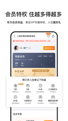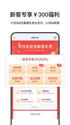 4、第一时间获知华住最新优惠信息和市场推广活动信息;查看和使用官方渠道独享的积分、红包、优惠券、储值支付服务。