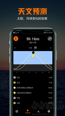 4、天文学信息:查看太阳和月亮的升起和落下时间,了解当前月相信息。