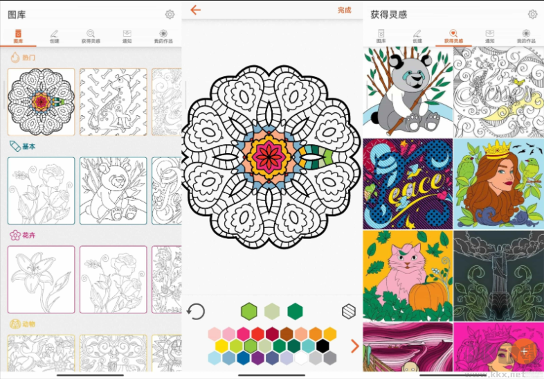 3. 丰富的颜色选择:colorfy涂色书提供了丰富的颜色选择,包括基本色、渐变色、自定义色等,满足用户对颜色的多样化需求。