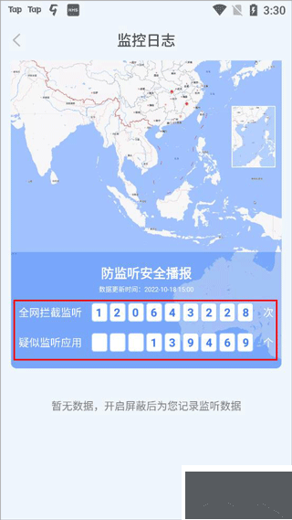 3、打开监控日志,可以查看拦截监听次数和疑似监听应用。