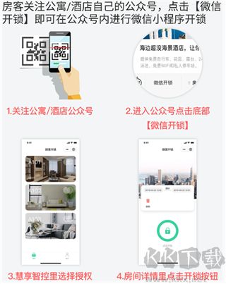 (需要公众号先关联小程序,才能实现关注酒店/公寓自己的公众号来进行微信开锁)
