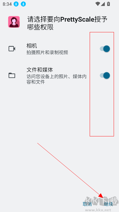 在kk下载站下载安装prettyscale官方中文版,勾选授权,点击继续进入