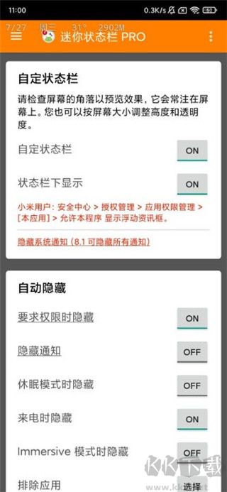 3、具备自动隐藏功能,可在隐藏通知、有新通知、休眠模式、来电模式时自动隐藏。