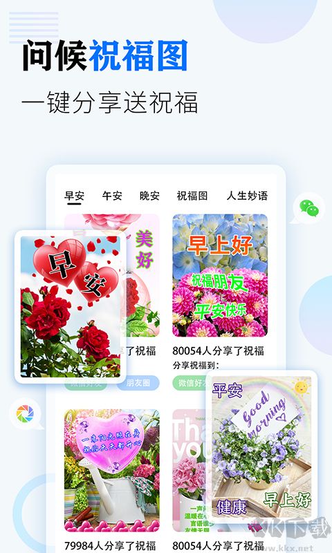 多种生动有趣的动画场景,让回忆比现实更美好。比如浪漫星空、可爱爱心、飞舞花瓣、童年纸飞机、彩色泡泡等几十种特效,让每张照片都充满活力。
