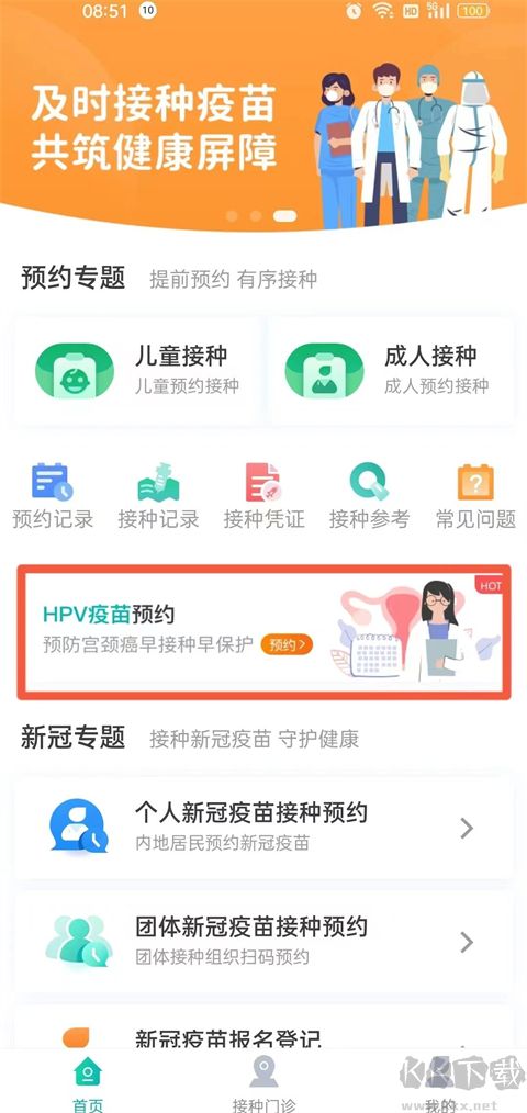 2、填写完成之后就可以返回首页点击hpv疫苗预约