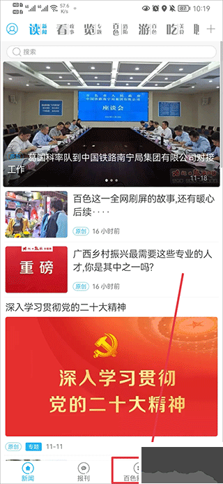 1、打开右江日报APP,在首页找到【百色新闻网】入口并点击。