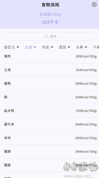 3、可以搜索某个食物的热量。