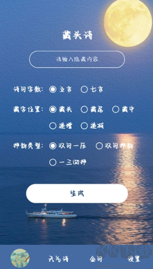 3、自由嵌字功能:藏头诗、隐尾诗、嵌中诗,随心定制文本结构