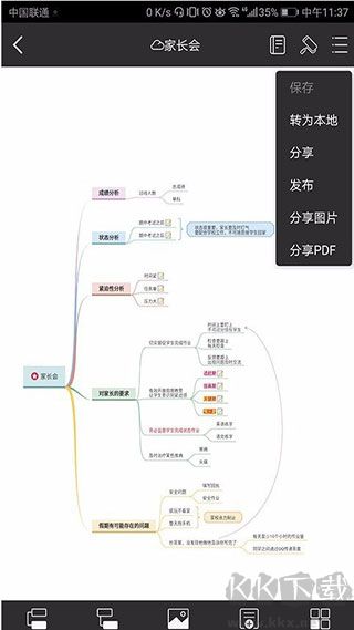 2、若需将个人云端存储的思维导图转存至手机,请在编辑视图中点击右上角功能键,选取"转为本地文件"选项,即可完成本地化存储。