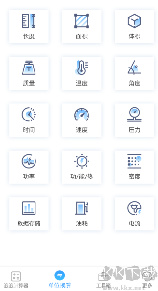 2、切换至单位转换界面,实现多维度计量单位互转。