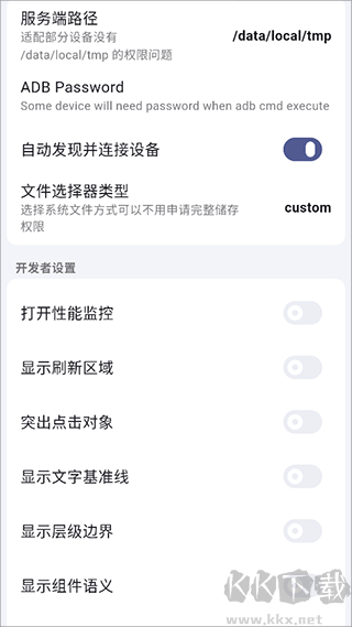 ADB KIT是一款面向安卓开发者的移动端调试工具,支持便捷管理安卓设备。提供无线与有线双连接模式,连接成功后可在移动端管理多台设备。支持文件传输功能,实现电脑与设备间快速数据交换。内置终端模拟器,可直接执行各类ADB指令进行在线测试。