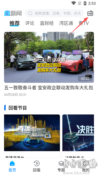 1、打开直新闻官方版App,点击右上角的【收音机图标】