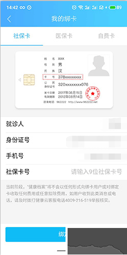 3、可自行选择绑定社保卡、医保卡以及自费卡完成绑定。