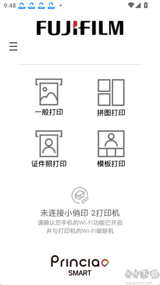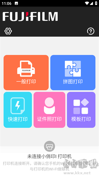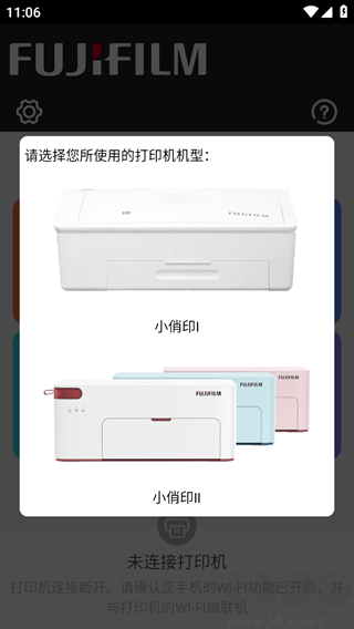 1、下载并打开富士打印 App,选择对应的打印机型号,确保手机 WiFi 已开启并与打印机处于同一网络;