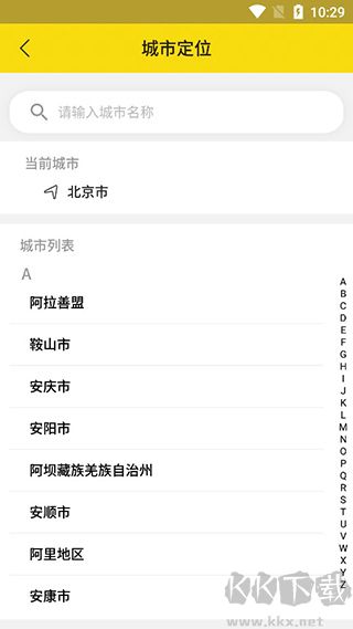 1、首先选择自己当前的城市,可以输入城市名称定位。
