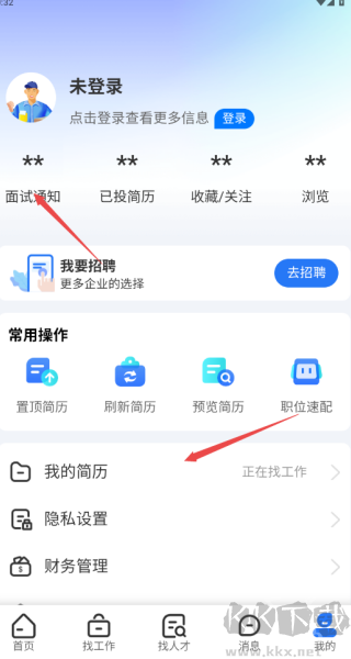 4、在“我的”页面中可制作简历、查看投递状态与面试邀请。
