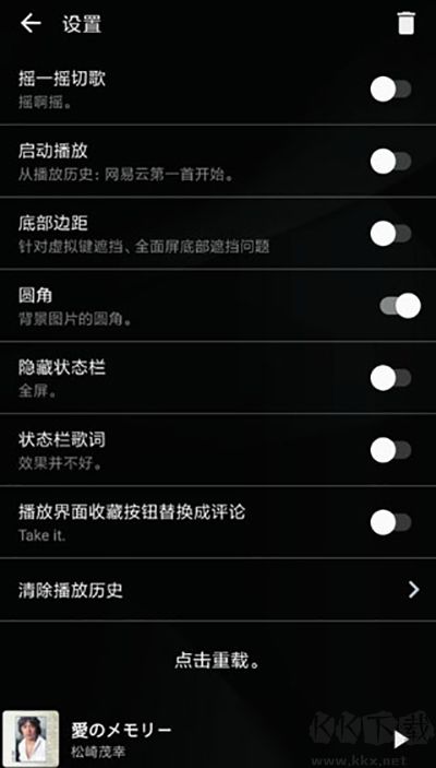 7、提供摇一摇切歌、本地歌曲显示等便捷操作,设置中还隐藏多项实用功能等待用户探索使用。