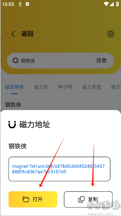 7、轻点对应磁力链接,可选择打开或复制操作