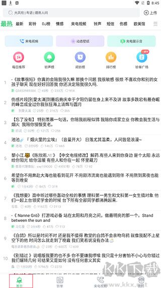 2、铃声分类丰富多样:涵盖流行金曲、影视热歌、动漫游戏、短信提示音、DJ舞曲、搞笑另类、网络爆款、用户上传等内容,拥有覆盖面广的铃声资源库。