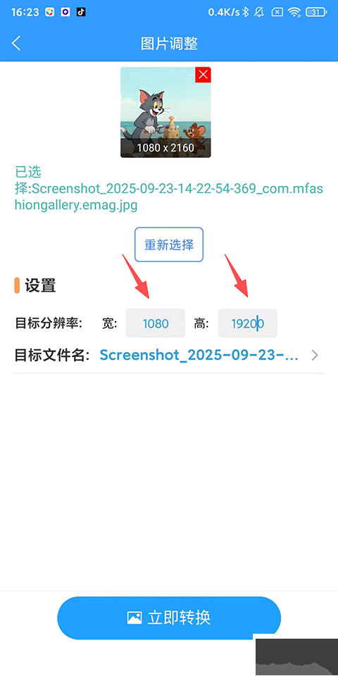 3、设置目标分辨率,点击下方【立即转换】!